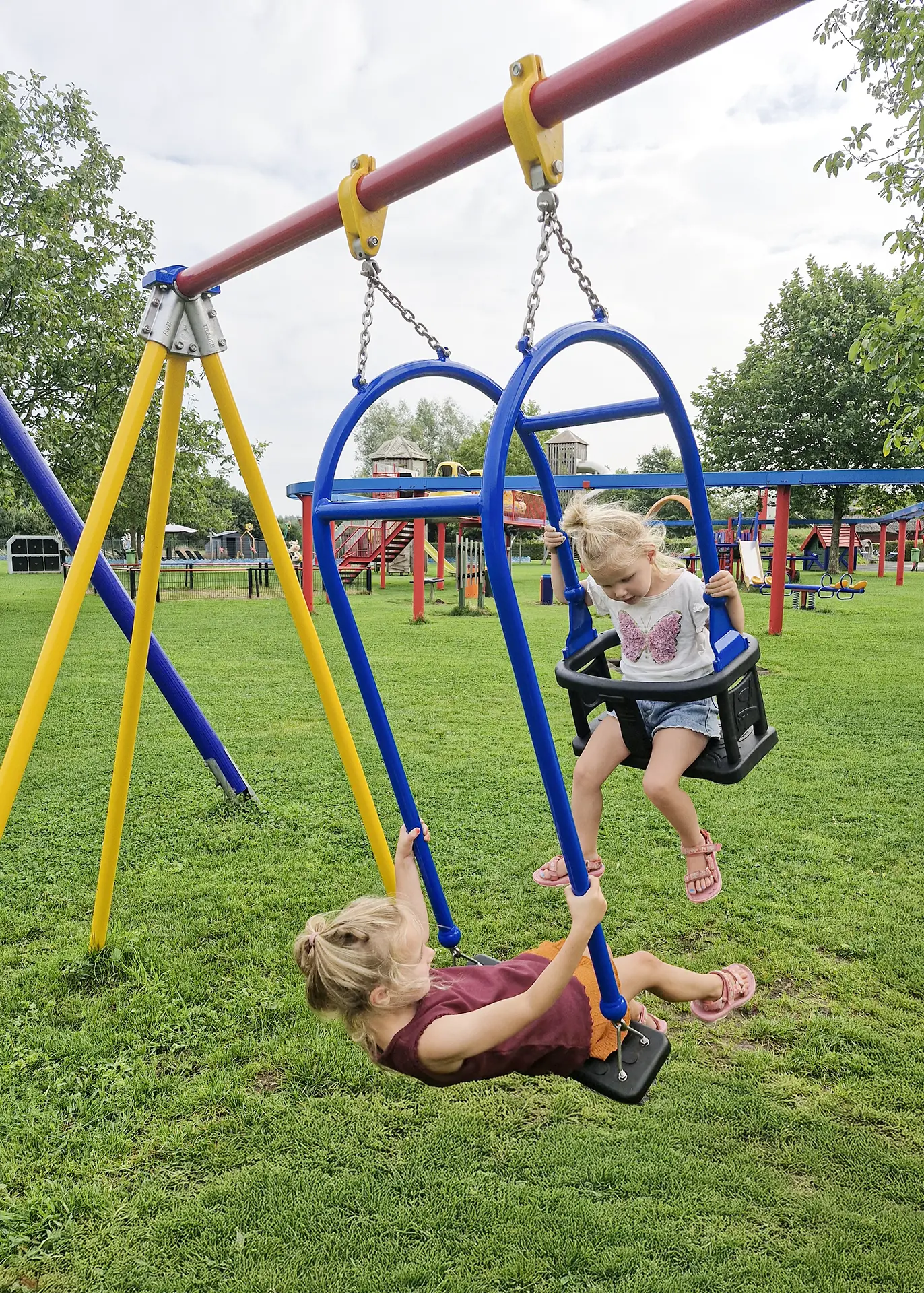 Op het buitenterrein van MegaPret staan allerlei schommels klaar: van klassieke plankjes tot comfortabele netschommels. Of kies de ouder-kind schommel en zwaai gezellig samen de lucht in.