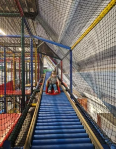 Trap op de pedalen, stuur met de twee handgrepen en scheur over het parcours van de skelterbaan in de buitenspeeltuin van MegaPret.